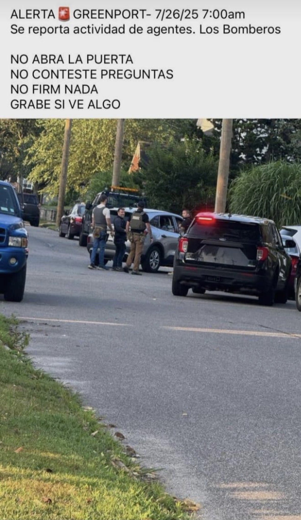 “It is horrible. It is sh*t. We have a text group to advise each other and couldn’t believe that on Sunday ICE were in town at the laundry mat. They took a man that I know well and they also came to our church. On Saturday, they came to my neighbors’ homes. They have never come as close to our houses, church or laundry. It is just horrible, really horrible. We are all afraid and just go to our jobs but don’t even feel safe coming home to our houses.” -B. A., Greenport, New York